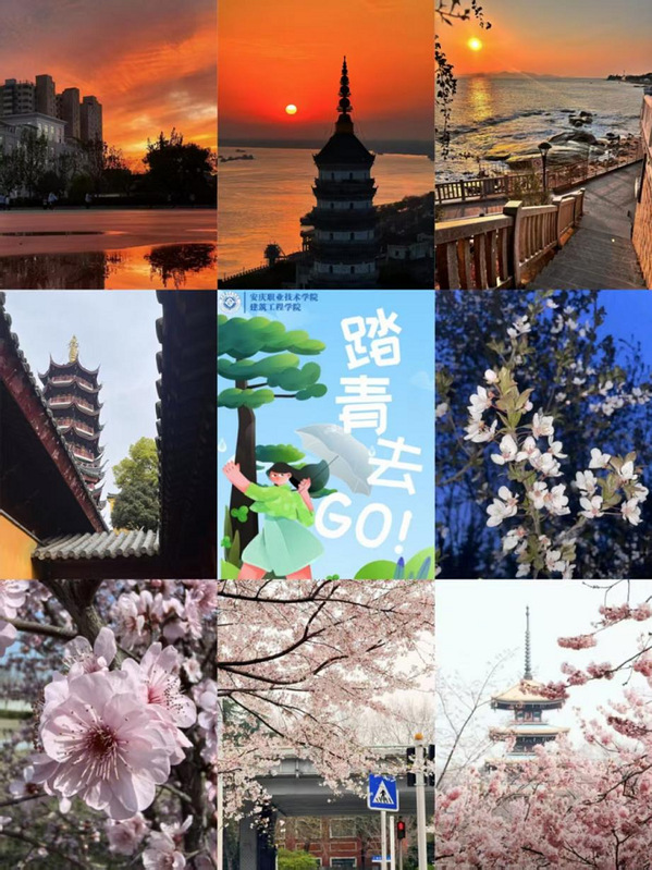 历经十天的作品征集与遴选,参赛者以独特视角呈现了春日的多维画卷。投稿作品既有樱花纷飞的大学校园、晨光晕染的振风塔等建筑与自然交融的匠心构图,也捕捉到雨后青苔漫过石阶、紫藤垂落古建筑窗棂等细微之处的盎然生机。
