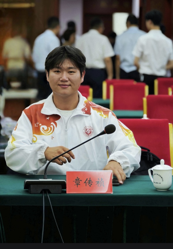 2024年5月,章传祯与同班郭超同学见义勇为施救落水男子,先后获评“安庆好人”、安庆市见义勇为三等奖。章传祯在发言中,真诚地讲述了自己救人的经历与感受,他的话语中满含对学校培养的感恩,对传递社会正能量的热忱。此次能作为优秀青年代表参加座谈会,他深感荣幸,并表示将以此次座谈会为契机,继续发光发热,以实际行动影响身边的人,在点滴小事中传递正能量,共同营造良好的社会风气。(文:严彤彤  图:严彤彤  审稿:王婷)
