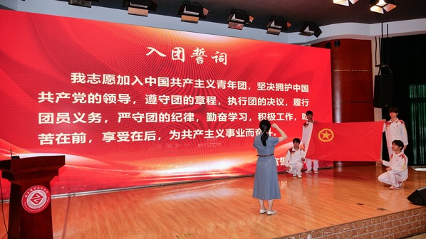 会上,各二级学院新发展团员代表集中进行了入团宣誓,铿锵有力的誓言声声回荡在报告内,彰显着我校青年学子对共青团的忠诚与向往。随后,与会领导依次为省市级、校级先进团组织及个人进行了颁奖。