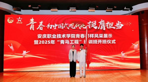 校团委负责同志宣读了表彰文件,并为2025年“青马工程”培训班授旗,青马班学员代表郑重接过旗帜。学员代表信息技术学院曹倩茹同学作表态发言,她表示,定会珍惜参加此次培训班的学习机会,充分发挥青马学员和学生骨干的示范引领作用,把榜样力量转化为我们自己的内在动力和外在行动,不断激励自己,淬炼思想、强壮筋骨、提升境界,努力成为更加优秀的团员和青年!