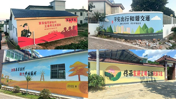 信息技术学院实践团队由4位指导教师带队,共17名师生组成的社会实践团赴安庆市怀宁县邓桥村、岳西县独山村,聚焦乡村振兴开展乡村壁画创作,以艺术赋能美丽乡村建设。以“乡村振兴”“民俗文化”“生态宜居”三大主题对村委会周边墙面、村口文化长廊及主干道墙体进行墙绘创作。活动前后历时一个半月,社会实践团共创作墙绘作品50余幅,面积达800余平方米。